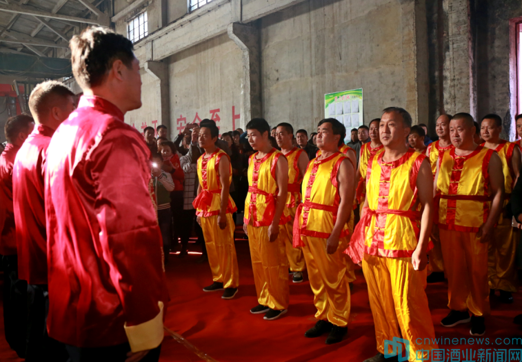 10月28日封坛大典正式开始,祭酒神是酒行业传统的仪式。在酿酒车间,由国家高级酿酒师、品酒师、自治区评委、公司生产技术总监付丰军,国家高级酿酒师、公司第二十九代酿酒传人、包装主任刘兴宝,国家高级酿酒师、公司三十一代酿酒传人、酿酒车间主任罗政治,身着汉服,带领20名酿酒技师们敬香。品质检验大师章忠泰手持锦册,宣读祭文,酿酒师傅们手抱酒坛,祭天、祭地、祭酒神。他们神情庄重,仪式庄严,虔诚上香,虔诚跪拜,祈福酒神杜康保佑古城酒源远流长。