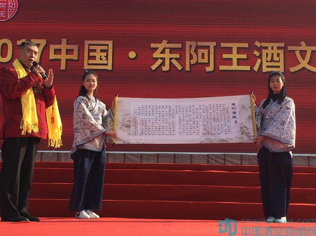 万户喜鹊吉祥地,千年阿酒福寿乡,2017年12月6日,2017东阿王酒文化节在山东东阿酒厂有限公司隆重举行。中国酒业协会白酒分会理事长赵建华、全国著名白酒专家全国品酒女状元金凤兰、山东省白酒协会会长姜祖模、山东省糖酒副食品商业协会会长薛剑锐、聊城市工业行业管理办公室主任吕昭华、聊城市白酒协会会长聊城市糖酒副食品商业协会会长赵传新、东阿县政府及相关职能部门负责人、东阿酒厂职工代表和经销商、行业及地方相关媒体代表600余人共同见证了这一重要时刻,品味了东阿王酒。