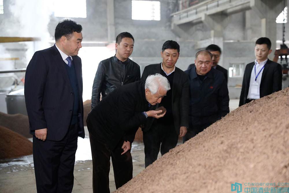 国美酒业集团董事长武玉杰陪同白酒泰斗季克良先生参观粮食酒车间