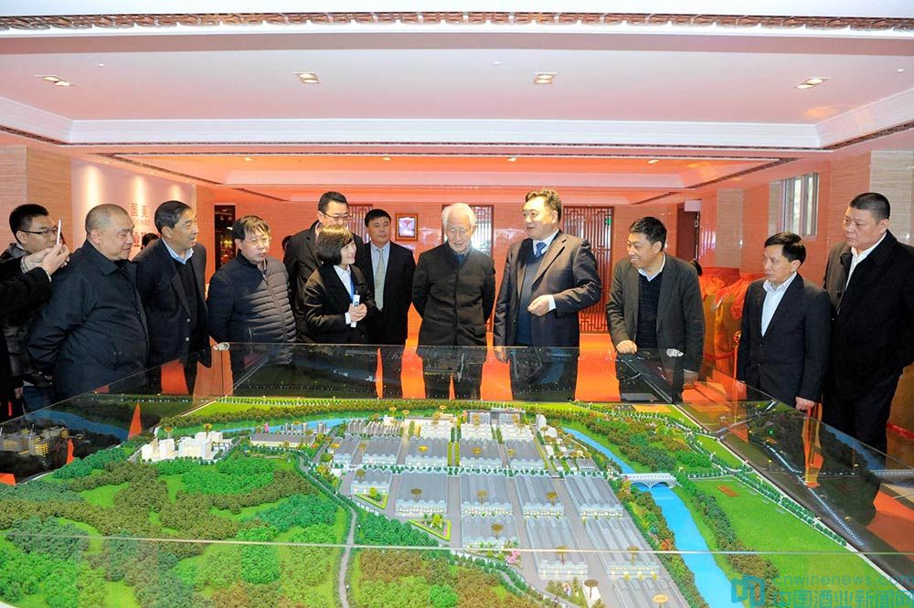 国美酒业集团董事长武玉杰陪同白酒泰斗季克良先生和嘉宾观看宜宾国美酒业股份有限公司沙盘