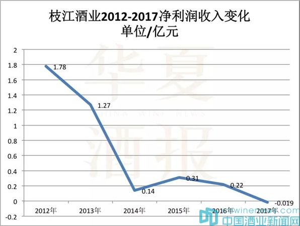 再来看净利润的变化。2012年到2017年间,枝江酒业从盈利1.78亿到亏损193万,惊心触目。