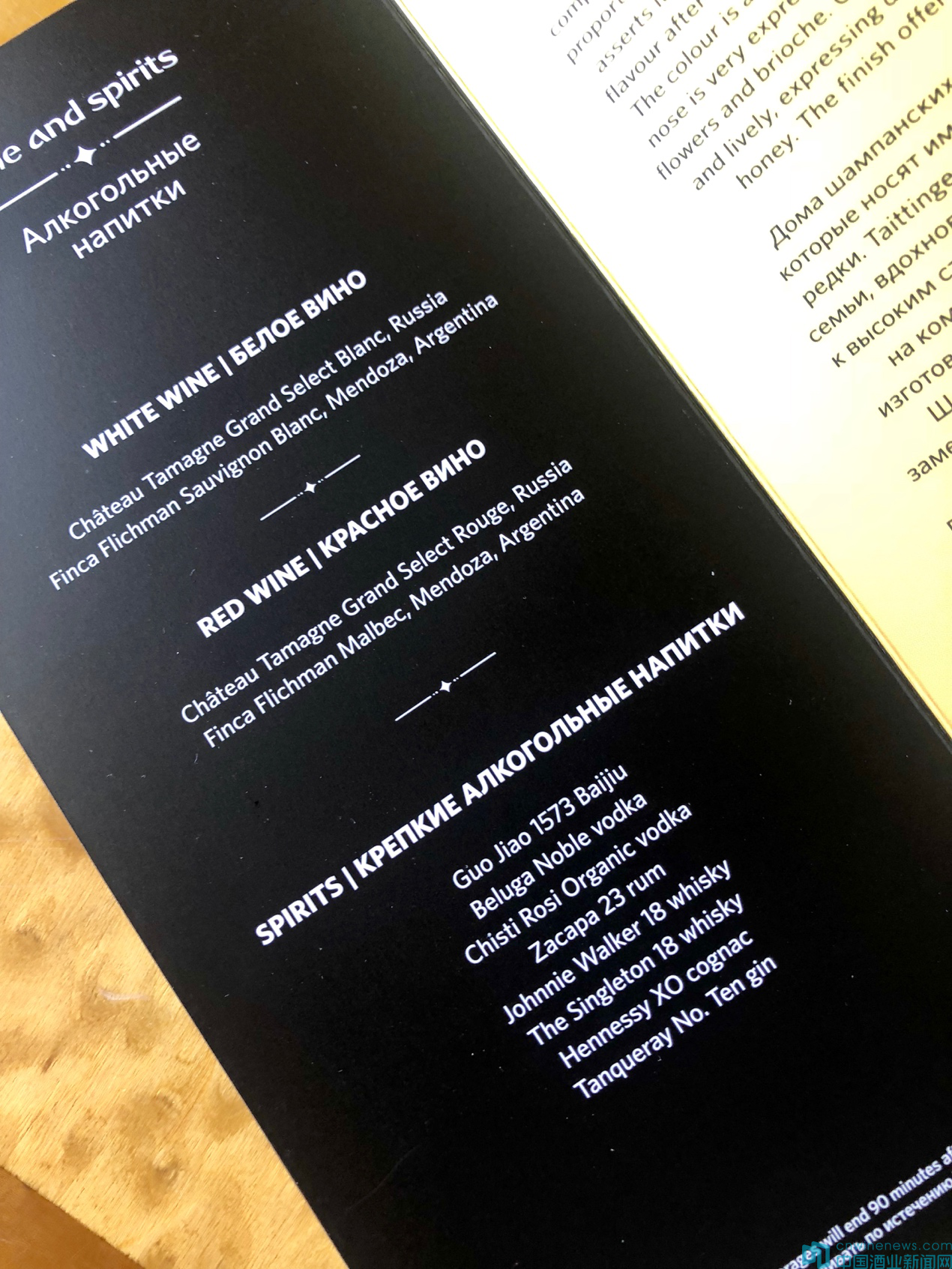 (俄罗斯世界杯款待包厢中的酒水单和鸡尾酒水单均有国窖1573和Panda1573可供全球球迷品鉴)