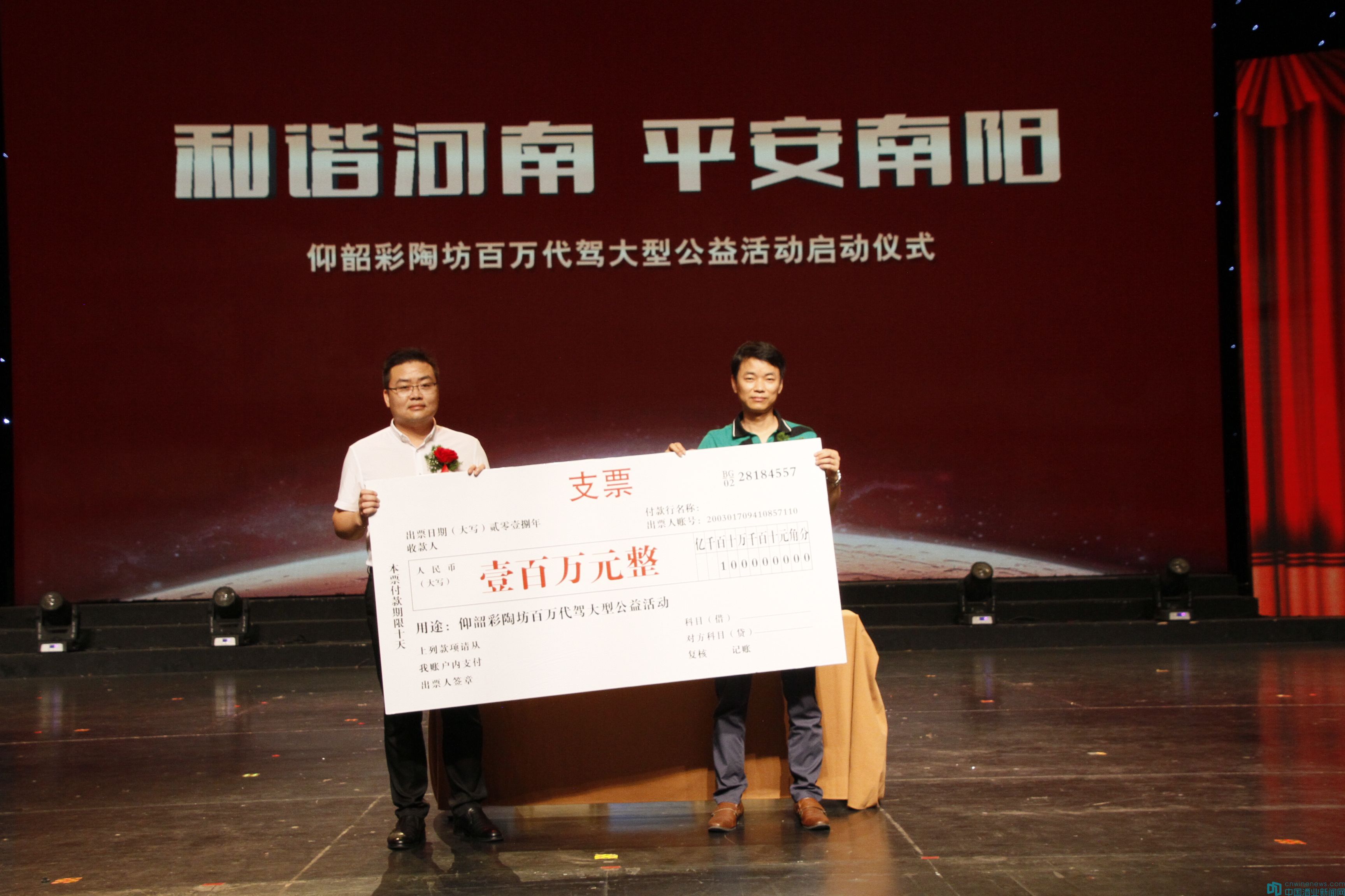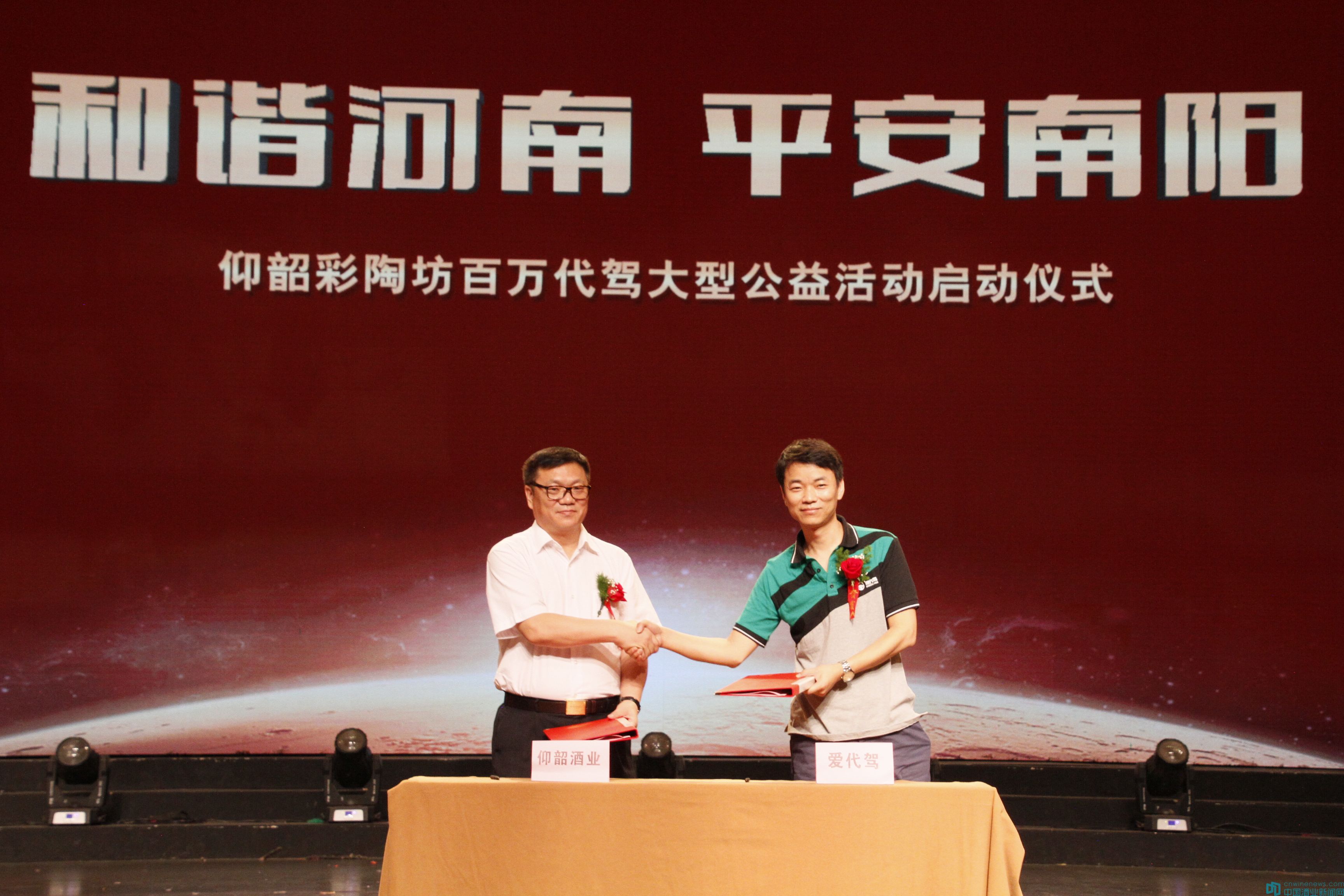 8月31日上午,由仰韶酒业推出的“和谐河南·平安南阳——百万代驾大型公益活动”正式启动。中共河南省委原副书记郑增茂,中共河南省委组织部原常务副部长王忠厚,河南省商务厅原厅长侯国富,河南省供销总社原主任孟少辉,河南省职业技术学院原党委书记杨寿亭,中国酒业协会副理事长刘秀华,仰韶酒业党委书记、仰韶酒业董事长侯建光,仰韶营销公司总经理卫凯等出席活动。