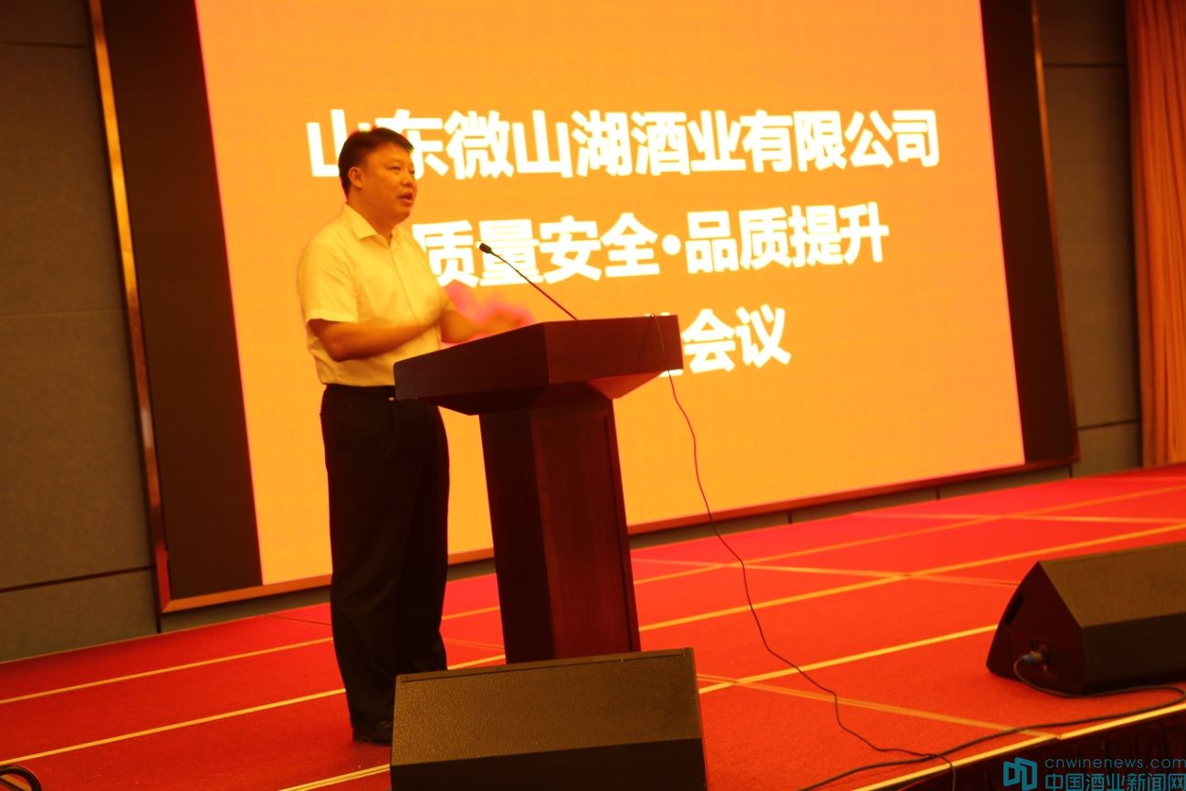 山东微山湖酒业有限公司总经理朱思良在以“建立完善的质量管理体系,不断提升产品质量”为主题的演讲中,向来宾系统全面的讲解了微山湖酒业近年来,在微矿集团的正确领导下,秉承微矿集团“安全为天,效益为本”的企业理念,积极践行“遵章守纪,用心工作,乐于奉献”的企业核心价值观。全体干部职工凝心聚力,各项工作得到较好发展,业绩实现大幅提升。质量安全稳定,品质不断提升,荣获省优产品、百年老字号等多种荣誉称号。