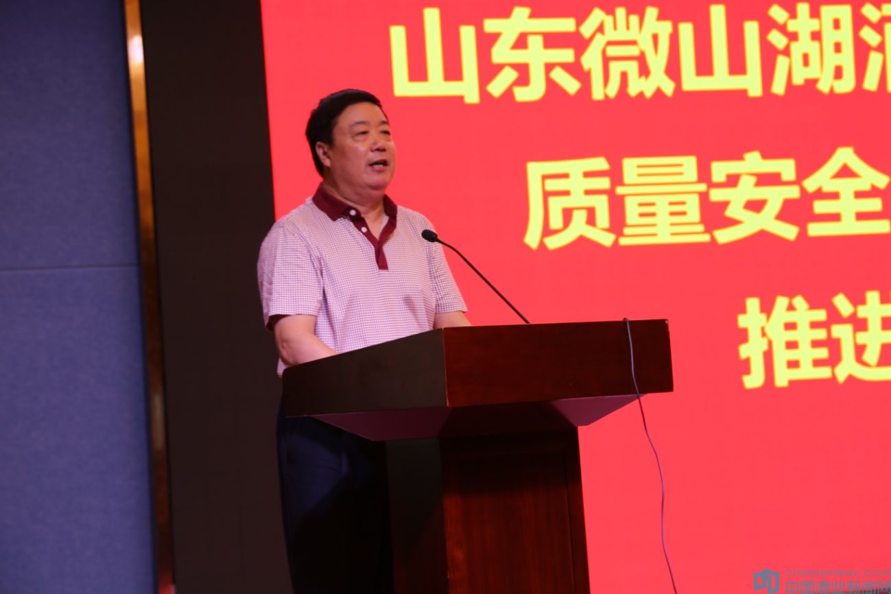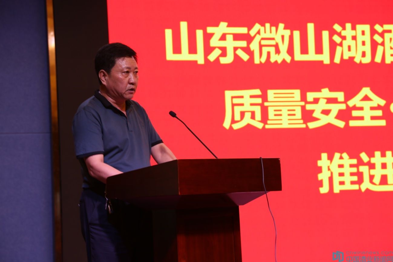 微山县食品药品监督管理局局长孙东军、微山湖矿业集团公司党委书记张长宏、微山湖酒业有限公司总经理朱思良、微山湖酒业党总支书记、副总经理赵井林、济宁品牌建设促进会秘书长秦烨伟出席会议并讲话。