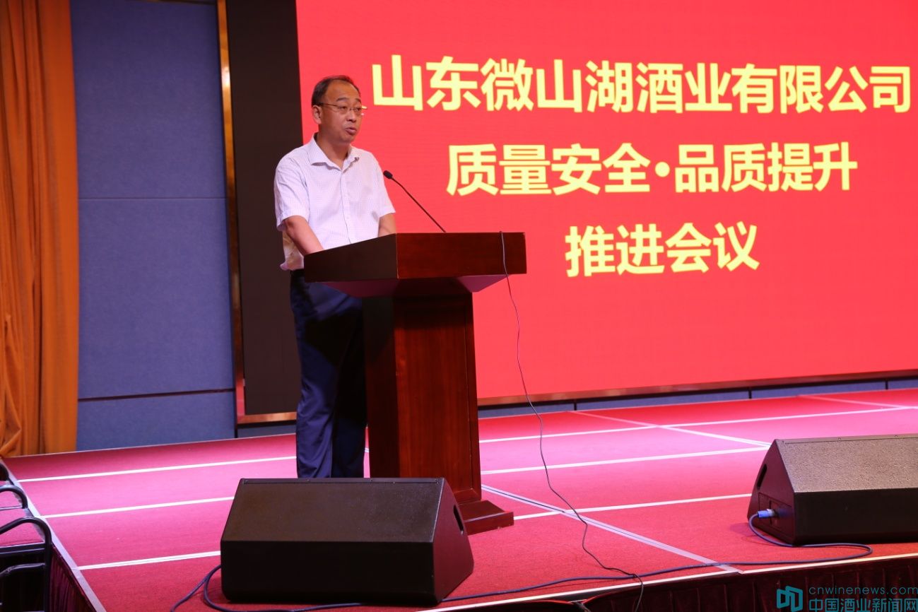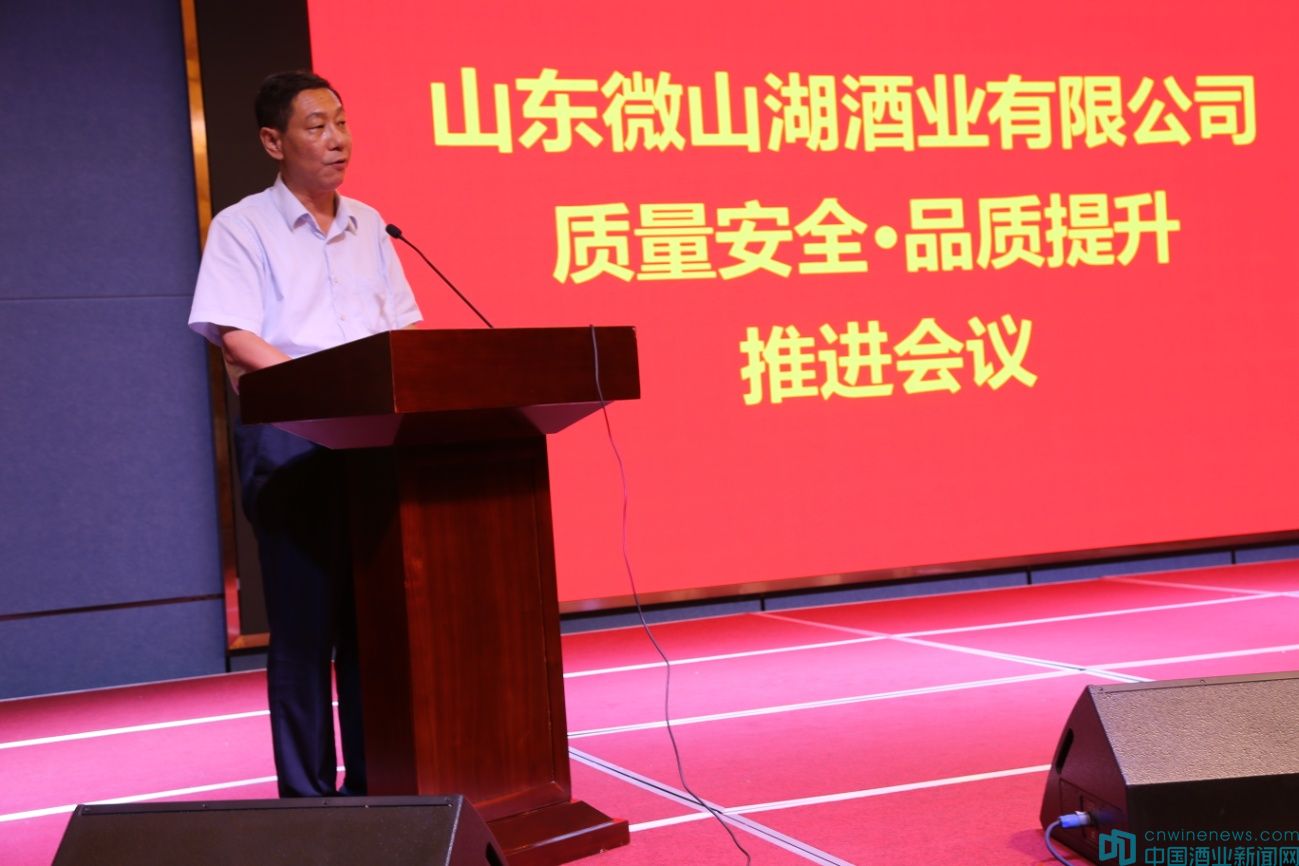 好水酿好酒、好酒微山湖!临近仲秋,秋高气爽,美酒飘香。美丽的微山湖畔,山东微山湖酒业有限公司质量安全品质提升推进会议,日前,在装饰一新的微山县蓝海钧华大酒店隆重举行。来自微山县委、县政府、人大、政协办公室以及县发改局 、经信局 、商务局、财政局等局委办30多个部门和韩庄镇 、 微山岛镇、昭阳街道 、 夏镇街道等16个乡镇街道以及微山湖旅游集团 、创达投资集团 、容商集团 、春蕾公司等实体单位200多人参加了会议。会议由微山湖矿业集团董事长张玉涛主持。