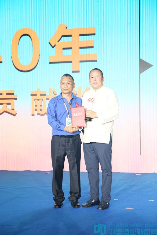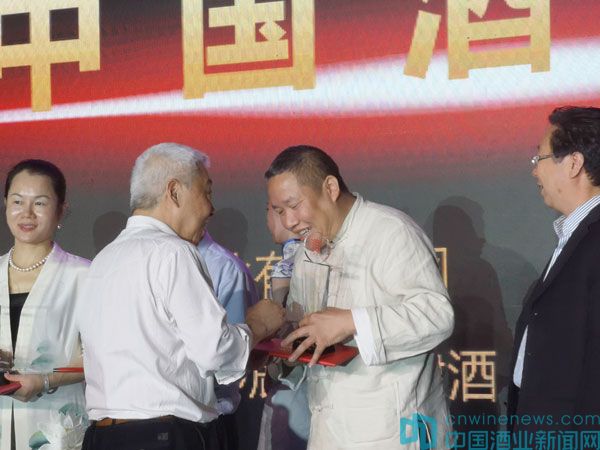 《华夏酒报》、中国酒业新闻网总编辑韩文友为中国沈酒集团董事长沈鸿林颁奖。