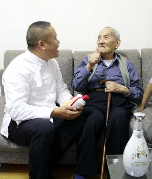 北京,是一座历史厚重、文化灿烂的现代化城市。这里云集了中国酒业协会、中国副食流通协会、中国酒类流通协会、中国食品工业协会、中国诗酒文化协会等诸多上级领导单位的老领导,也隐藏着酒界的泰山北斗,时年110周岁的秦含章先生就是最具代表性的一位。沈氏夫妇此来,就是专程登门拜会这位人间寿星来的,这是沈酒集团继去年拜会后的又一次拜访。