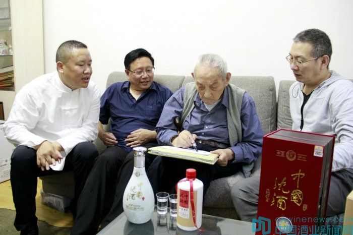 9月17日14:30分,在沈重武先生的引领下,沈鸿林夫妇一行来到了酒界泰斗、生于1908年的人间寿星秦含章先生的居所,恭恭敬敬地奉上溢满深深祝福的礼品,并打开了随身带来的酱香、沉香两款代表性的沈酒,一一恭请秦含章先生品鉴。