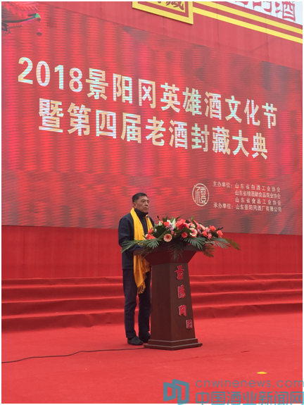 阳谷县人民政府副县长杨廷军、山东省糖酒副食品商业协会会长薛剑锐、中国酒业协会副理事长刘秀华分别致辞,对2018景阳冈英雄酒文化节暨第四届老酒封藏大典的隆重举行表示祝贺,对景阳冈酒业近年来所取得的成绩表示肯定,并对景阳冈酒业未来的发展提出了期望。