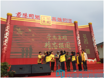 封藏大典在歌伴舞《一壶老酒》中拉开帷幕,刘秀华、蒋秋霞、孙庆文、薛剑锐、郭友武、蒋彬等知名白酒专家共同上台品尝英雄美酒,为美酒封坛储藏。