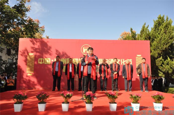 红旗渠酒业董事长蔡彦周先生热情洋溢地致欢迎辞。林州市政协副主席辛有录发表了重要讲话,对第四届红旗渠白酒文化节暨2018年开窖仪式成功举行表示祝贺,对红旗渠酒业的发展前景给予了希望。