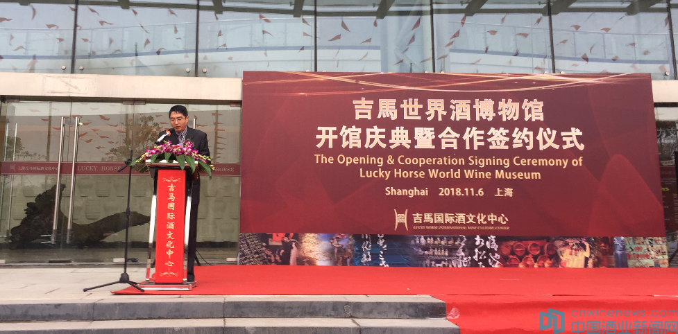 11月6日,首届中国国际进口博览会召开之际,上海吉马世界酒博物馆开馆庆典暨合作签约仪式在吉马世界酒博园隆重举行。福建漳州市人民政府市长刘远,漳州市委常委、古雷开发区党工委书记吴文团,漳州市人民政府副市长吴卫红,中国酒类流通协会会长王新国,中国副食流通协会会长何继红,上海市嘉定区江桥镇党委书记汪洁,上海市文物局领导,上海市收藏协会会长以及著名白酒专家、葡萄酒专家赖登燡、徐占成、钟杰、李华等专家顾问团队,中国各大名酒厂主要负责人、国外酒庄代表、媒体记者等一百余人出席,共同见证了吉马发展史上具有特殊意义的重要时刻。