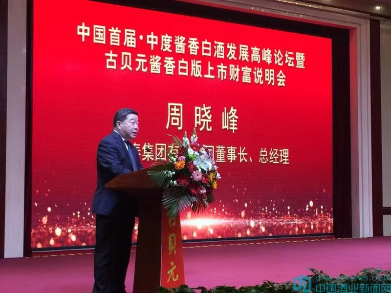 古贝春集团有限公司董事长、总经理周晓峰就公司酱香型白酒不间断产销35年来的历史与现状、未来与保障等问题进行了简要阐述。他分三个方面进行阐述:一是一脉相承奠定北宗地位。他回顾了35年前茅台酒厂厂长季克良先生委派他的老师—刚刚退休的茅台酒厂生产技术科长杜安民先生,不远数千里来武城酒厂研制酱香型白酒的历史,以及在公司去年10月份举办的“中国酱香北宗—国蕴、古贝元酒发展战略研讨会”上,季克良先生亲临公司参观并挥毫题词“南酒北酿、酱香传承”的高度评价。二是持之以恒坚守工艺标准。他说,35年来,古贝春集团无论是在顺境还是逆境,都保持着酱香型白酒生产酒班的生产,保持着工艺、窖池、人员的全方位传承,不仅保持了茅台正宗“血统”,而且培养了包括“中国白酒大师”在内的技术团队。正因如此,才有能力自主研发今天问世的中度酱香型古贝元白版酒。三是精准推进市场发展战略。他指出,关于酱香型白酒的生产和未来规划,公司一直坚持四个原则。一是保证品质,二是品种宁缺毋滥,三是坚持正宗酱香型白酒与北方口感的完美统一,四是定位江北市场,不负“中国酱香北宗”的使命。