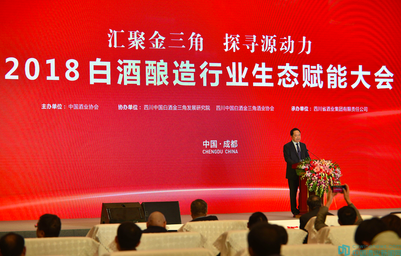 12月19日上午,由中国酒业协会主办、四川中国白酒金三角发展研究院、四川中国白酒金三角酒业协会协办、四川省酒业集团承办的“2018白酒酿造行业生态赋能大会”在成都举行。
