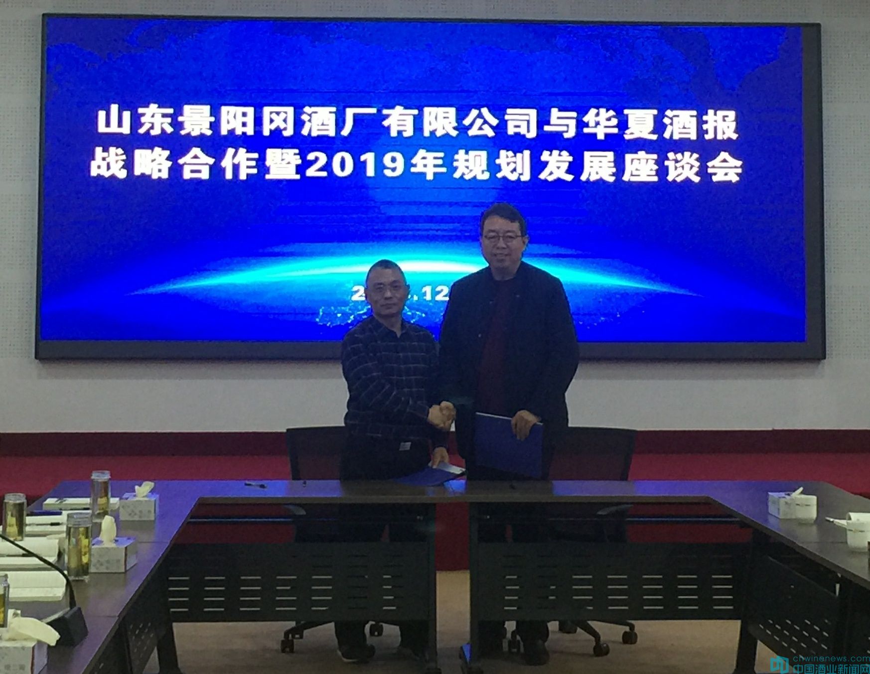 12月27日,山东景阳冈酒厂有限公司与《华夏酒报》战略合作暨2019年规划发展座谈会,在景阳冈酒厂隆重召开。