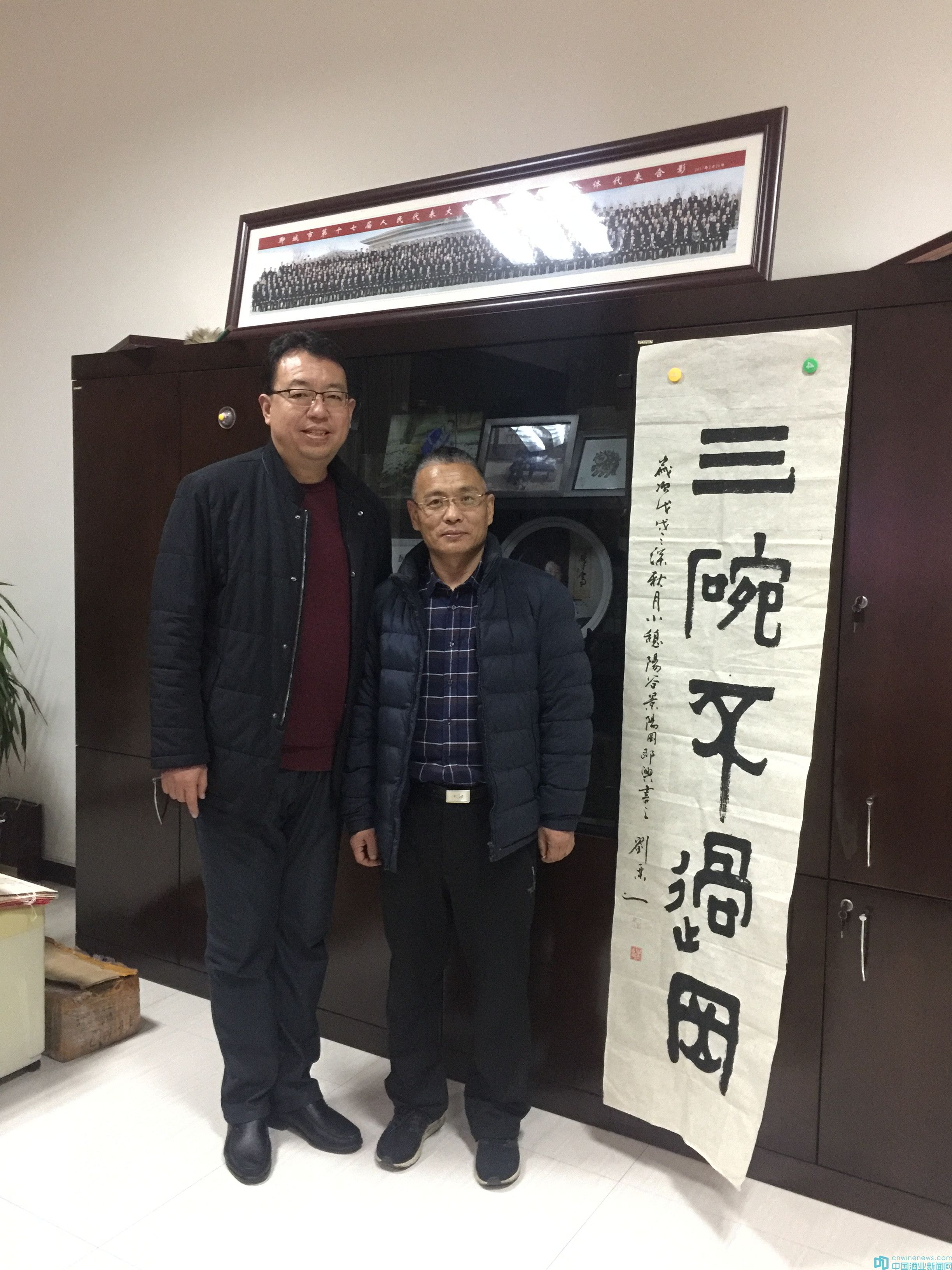 景阳冈酒业董事长赵传新与《华夏酒报》总编辑韩文友合影