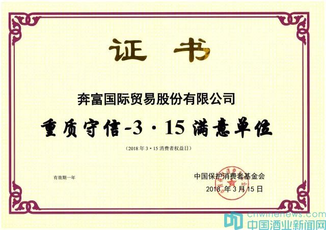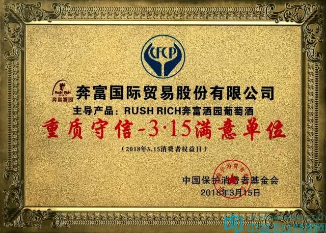 这是“奔富酒园RUSHRICH”品牌继2017年全面参与中国消费者保护基金会的“消费者权益保护”活动之后,在2018年3.15消费者权益日来临之际,依据众多专家的评审和社会调查的综合结果,决定再度授予澳大利亚“奔富酒园RUSHRICH”品牌运营公司奔富国际贸易股份有限公司为“2018年3.15消费者权益保护”满意单位。这也是该基金会连续两年授予奔富股份此奖项,充分体现了对奔富股份在过去一年中对中国市场的品牌建设和全国消费者的权益保护方面的高度认可。
