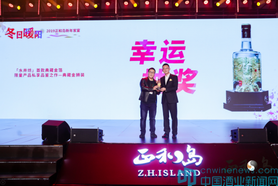 而在正和岛为期三天的新年家宴中,水井坊更是承包了一众参会嘉宾大佬元旦期间的朋友圈:不仅作为本次企业家新年家宴指定用酒,成为了高端商务人群的标配,供嘉宾新春贺岁;更有集体性刷屏的最嗨时刻,在欢迎晚宴的抽奖互动环节将整个家宴推向了高潮,神秘的限量新品传承着水井坊的新年猪福与好运降临到当晚最幸运的人:蒋锡培和匡洪生。