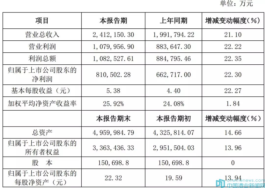 2月27日,洋河股份披露2018年业绩快报,报告显示全年实现营业总收入241.21亿元, 同比增长21.1%;实现归属于上市公司股东的净利润 81.05亿元,同比增长 22.3%。