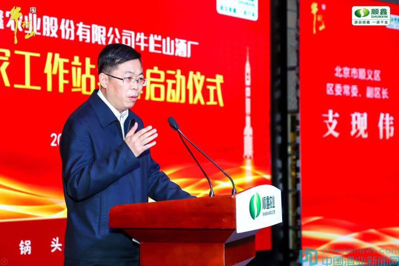 4月9日,北京顺鑫农业股份有限公司牛栏山酒厂院士专家工作站在牛栏山酒厂新厂区会议室揭牌。北京顺义区委常委、政府副区长、党组成员支现伟,中国工程院院士、北京工商大学校长孙宝国教授,北京顺鑫控股集团党委书记、董事长王泽,顺义区科学技术协会主席鲍晓芹,顺义区科委副调研员孙彦海,北京工商大学食品学院副院长郑福平教授,北京顺鑫控股集团党委委员、副经理张松涛,北京顺鑫农业股份有限公司牛栏山酒厂党委书记、厂长宋克伟,北京工商大学食品学院的教授、讲师,顺鑫控股集团总部各部室负责人,各产业集团、事业部(二级公司)、三级公司负责人共同见证了院士专家工作站的揭牌启动仪式。著名表演艺术家、牛栏山品牌形象代言人王刚也应邀出席了本次活动。