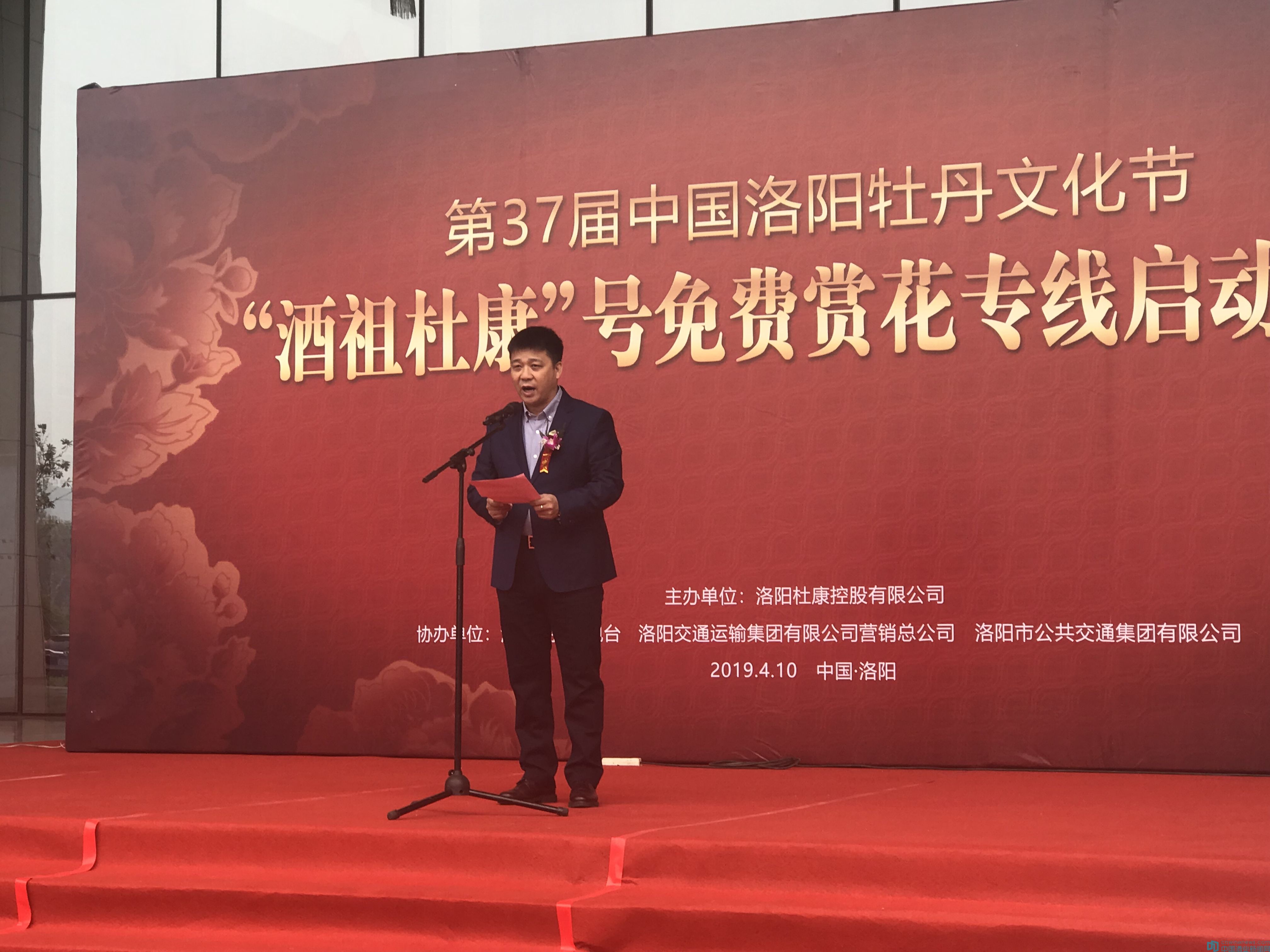 杜康控股销售公司总经理柳向阳在致辞中讲到,生于斯,长于斯,杜康的根在洛阳,杜康的源在洛阳,杜康取得的每一步发展,都离不开家乡领导和人民一直以来的支持和厚爱。杜康是五千年来中国酒文化的代名词,也是洛阳文化的名片,作为深深根植于洛阳的本土企业,我们为厚重的河洛文明而骄傲,我们也深知自身肩负的重任,有责任将洛阳源远流长的历史文化发扬光大。杜康再次携手中国洛阳牡丹文化节,全力协助第37届中国洛阳牡丹文化节,推出“酒祖杜康”号免费赏花专线公益活动,旨在方便更多的游客游洛阳、赏牡丹,为千年古都、牡丹花城赢得更多的喝彩与赞美!杜康控股酒业始终不忘践行责任与担当,积极回报家乡、回报社会,为助推洛阳市的经济发展增力。