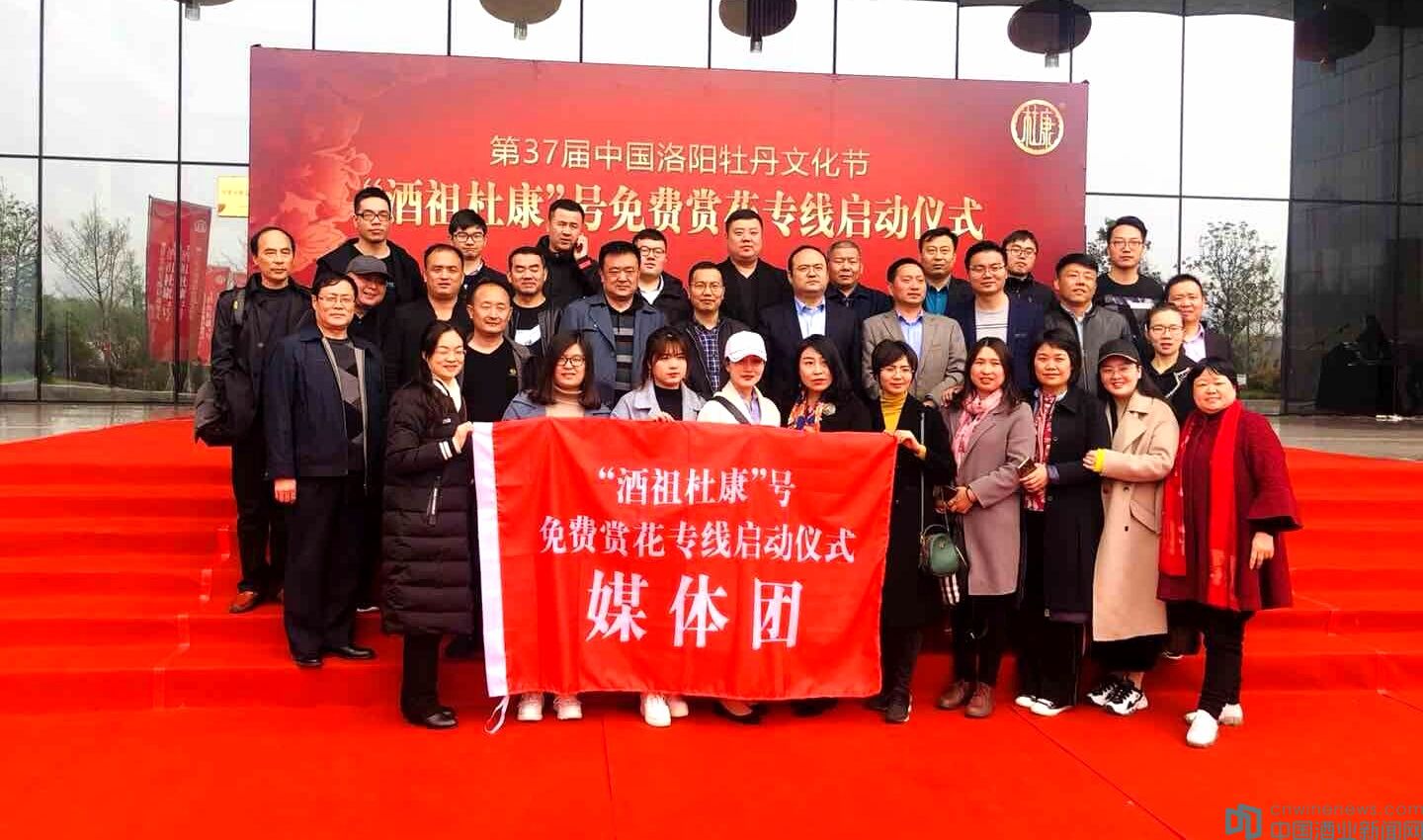 4月10日上午,“酒祖杜康”号2019牡丹节赏花专线启动仪式在洛阳广播电视中心举行。洛阳市文化广电和旅游局局长胡大鹏、洛阳广播电视台副台长张洪武、洛阳交通运输集团有限公司营销总公司副总经理谢五刚、洛阳交通旅游集团观光巴士有限公司经理程永辉、洛阳市公共交通集团有限公司副总经理杨顺广、洛阳杜康控股副总经理谢彬、杜康销售公司总经理柳向阳、杜康销售公司品牌总监韦伟与来自全国40多家主流媒体共同见证“酒祖杜康”号免费赏花专线的启动。