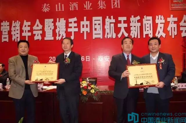 泰山酒业与中国航天结缘于2010年,经过缜密考察,泰山酒业集团被中国航天部门授予“中国航天事业合作伙伴”称号,五岳独尊酒被授予“中国航天庆功酒”,且在白酒行业具有唯一性和排他性。2016年,泰山酒业与中国航天达成战略合作协议,升级为“中国航天事业战略合作伙伴”。
