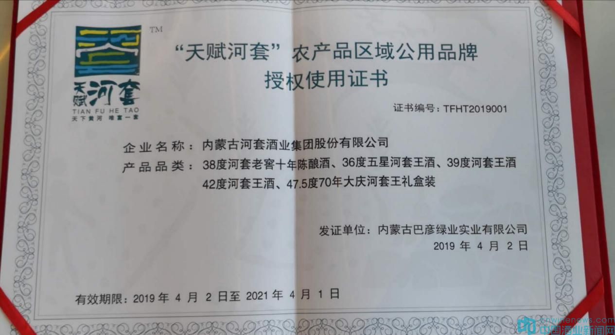 4月25日,在香港内蒙古农畜产品精品馆举行了“天赋河套”第二批授权企业授牌仪式,河套酒业集团的38度河套老窖十年陈酿、36度五星河套王酒、39度河套王酒、42度河套王酒、47.5度70年大庆(内蒙古自治区成立70周年)河套王礼盒酒等五款产品被授权使用“天赋河套”农产品区域公用品牌。目前,河套酒业集团共有7款产品被授权,是“天赋河套”农产品区域公用品牌中唯一的一家白酒酿造企业。