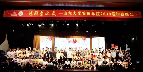 傍晚,“冠群芳”之夜—山东大学管理学院2019届毕业晚会在山东大学礼堂举行。毕业学子们用歌声传递力量,用舞蹈放飞梦想。