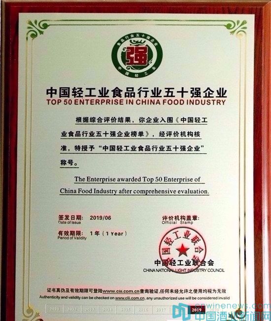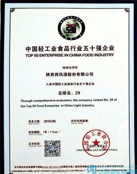 “中国轻工业食品行业五十强企业”榜单是评价轻工业食品企业竞争力的权威榜单,也是衡量中国轻工业食品企业发展活力的重要标准。此次榜单在评选标准上重点考量了2018年度参评企业的营业收入、利润总额、营业收入利润率、税收占利税比重、研发投入及营业收入增速六项指标综合评分,力求结合互联网时代特征对企业进行充分全面的评估,要求企业不仅能够实现均衡发展,还要具备较强的市场活力。西凤股份公司凭借出色的经营业绩和综合表现,获得了大会的一致认可。