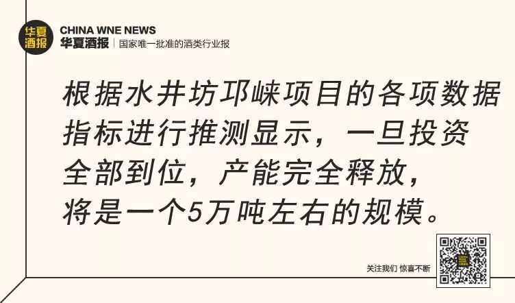 《华夏酒报》记者在邛崃调查时发现,根据水井坊邛崃项目的各项数据指标进行推测显示,一旦投资全部到位,产能完全释放,将是一个5万吨左右的规模。
