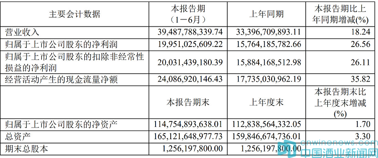 7月17日晚间,贵州茅台(600519.SH)发布2019年半年报,期内实现营业收入394.88亿元,较上年同期增长18.24%,归属于上市公司股东净利润达199.51亿元,较上年同期增长26.56%,期内经营活动产生的现金流量净额达240.87亿元,较上年同期增长了26.11%。今年上半年,贵州茅台基本每股收益达15.88元/股,较上年同期增长了26.56%。销售费用19.87亿元,较上年同期减少9.67%。