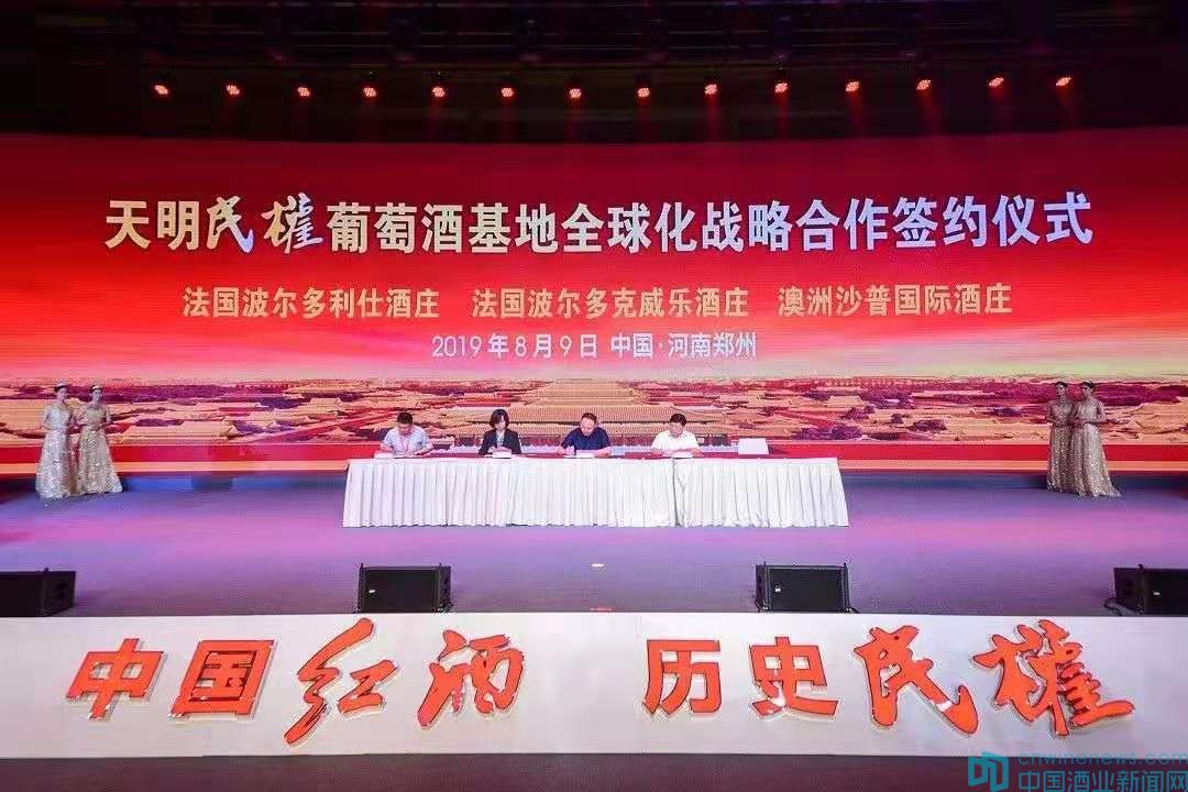 随后,与会的领导嘉宾一起登台,共同启动了“豫酒振兴,豫商有责,复兴民权葡萄酒”揭幕仪式。来自法国的波尔多利仕酒庄、波尔多克威乐酒庄,澳洲的沙普国际酒庄以及国内的建业新生活、熊猫传媒、酒仙网、UU跑腿等,分别与天明民权葡萄酒签署战略合作协议,以实际行动给予支持。