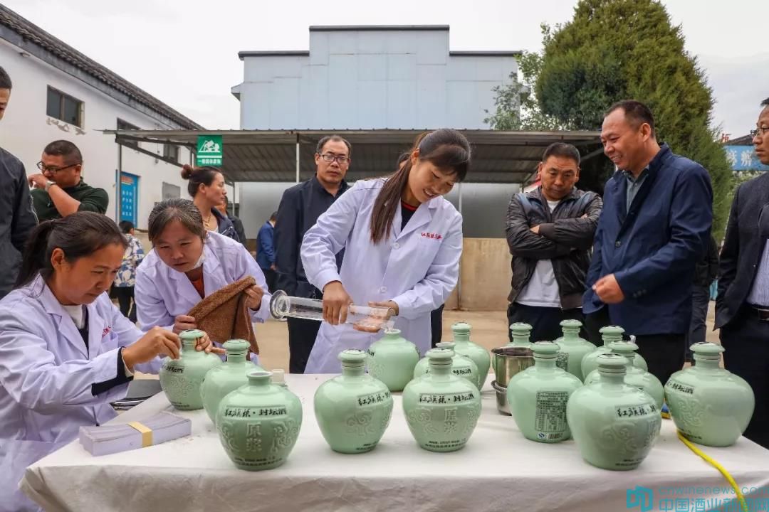 千年老窖育琼浆,古井神泉笼酒香。万众期待、激动人心的2019年度夏压窖头排酒开窖仪式将整场活动推向了高潮。古老的窖池旁边,酿酒师傅拢启盖帘,开窖嘉宾手握金锨,现场观众万头攒动,皆欲先睹为快。“秋来秋来,九九阳开;白露丰润、窖开头排;天地同酿、紫气东来”。随着数十名身着汉服的金童玉女的齐声呼唤,金锨齐舞,铲开窖泥。一生二,二生三,三生万物,一锨、两锨、三锨,开窖仪式圆满礼成。装甑蒸馏、看花摘酒环节,只见从冷凝器中流出的原浆美酒晶莹剔透,闻之芳香扑鼻、沁人心脾。王杨先生现场品鉴后赞道:窖香浓郁、绵甜爽净、香味协调、尾净余长、风格典型,并为融入时代记忆的2019红旗渠度夏压窖头排酒签名封坛。