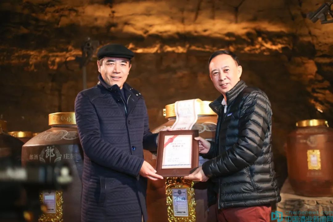 ▲郎酒集团董事长汪俊林为陈宝国颁发收藏证书
