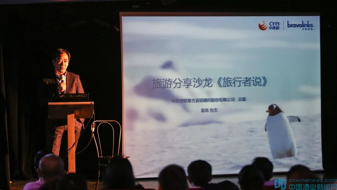 ▲为保证本次考察之旅有序进行,中青博联总裁袁浩亲临项目一线并全程陪伴。作为一名30年旅游业资深从业者,一个足迹遍布七大洲的旅行者,袁浩特别做了“旅行者说”主题演讲,分享他行万里路的感悟与启发。