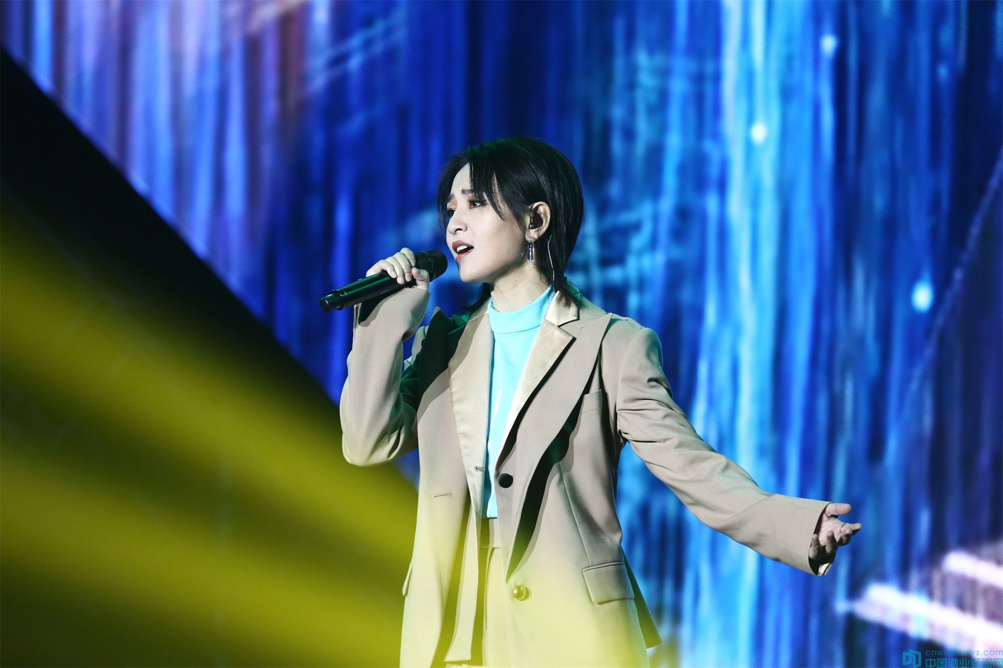 随着演出进行到高潮,周笔畅一身卡其西装帅气登台,一首《用尽我的一切奔向你》,唱出心中呐喊,震撼高音划破寒冬夜空;而紧接着带来的《岁月神偷》、《原来你也在这里》秒变温柔女神,饱含温情治愈力量,呈现出百变周笔畅。现场“笔粉”尖叫不断,高潮迭起。