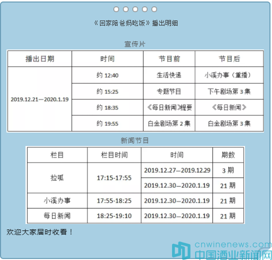 节目将会在全省范围内选择9组有代表性的家庭接受挑战。挑战家庭于2019年12月29日至2020年1月18日,不间断回家陪爸妈吃晚饭,如若中断,考验即告失败。