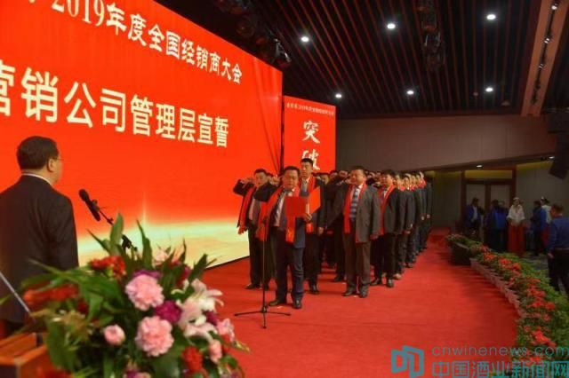 在接下来的营销总动员环节,周晓峰董事长发布了2020年再创佳绩的总动员令,销售公司总经理张洪昌带领销售部门负责同志面对周董郑重宣誓,誓以昂扬的斗志、奋进的姿态、务实的作风,全身心投入销售工作,保证完成董事会交付的历史答卷!