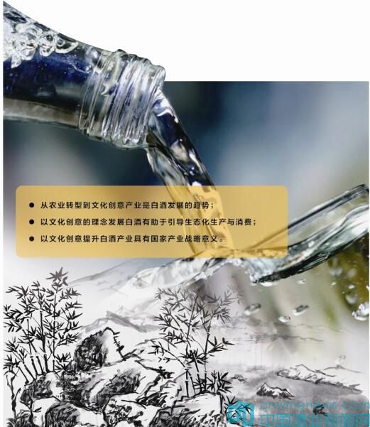首先,从农业转型到文化创意产业是白酒业发展的趋势:酒是用粮食、水果等含淀粉或糖的物质经发酵制成的含乙醇的饮料。从酒最初的生产过程起点看属农业产品,其原料的生产、采购、储藏等涉及大量的农业劳动,产品原始形态是散装酒,没有包装物,与农产品无异。