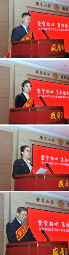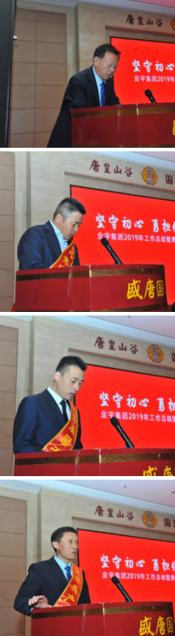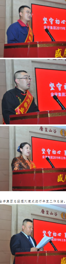 他在总结时说,回顾总结2019年所取得的工作成绩、工作经验和存在的不足,表彰在过去一年里涌现出来的先进单位和先进个人,是为了进一步凝聚思想,形成共识,坚定发展信心,激发工作干劲。他说,2019年是集团公司平稳发展的一年,是练内功、打基础的一年,也是积蓄力量的一年。集团公司遵循董事长年初提出的“找准问题所在,开启创新起点”的工作总基调,面对社会经济形势的低迷萎缩以及公司发展遇到的瓶颈,积极攻坚克难,扎扎实实做好每一项工作,取得的了较好的成绩。他从七个方面进行了总结。一是地产项目稳中求进;二是物业服务提档升级;三是葡萄酒业蓄势待发;四是主题酒店特色凸显;五是党建工作深入扎实;六是企业文化凝心聚力;七是绩效考核效果明显。他在最后强调,2020年是金宇集团成立20周年,是公司二次创业关键的一年。机遇和挑战并存。全体干部员工一定要顺应时代潮流,攻坚克难,主动作为,在新的一年里,让我们大家心往一处想,劲往一处使,形成一股绳,开创属于金宇集团的2020年新辉煌!