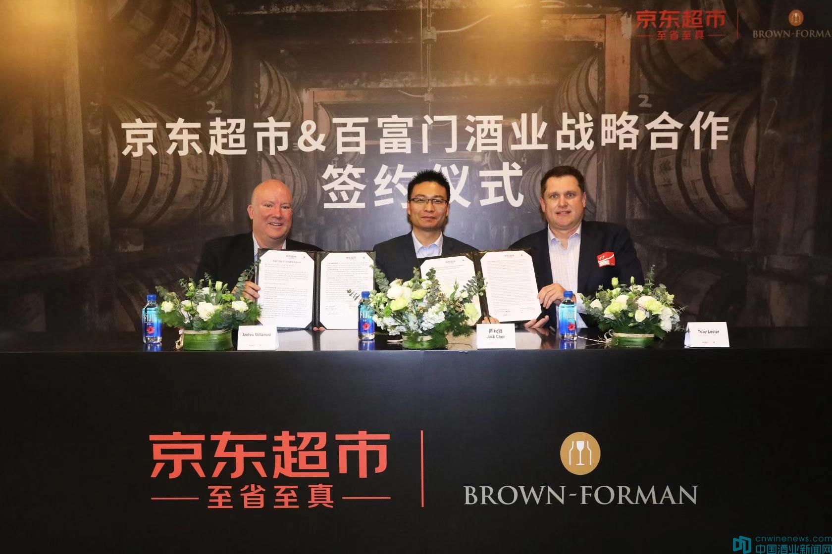 2020年1月16日,京东超市与全球顶尖烈酒集团之一百富门(Brown-Forman)酒业签署战略合作,未来,双方将在产品定制开发,品牌引进,整合营销,渠道拓展,全渠道零售和创新合作等展开深度合作。同时,百富门集团旗下美国波本威士忌品牌活福珍藏(Woodford Reserve)也将首次为京东超市推出在全球京东定制产品。