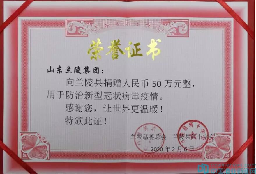 兰陵集团建厂七十多年来在发展自身的同时,还将企业的社会责任扛在肩上,积极投身公益慈善事业。自2004年以来,兰陵集团曾先后为临沂市慈善公益事业捐款千余万元。大事难事见担当,危难时刻显本色。兰陵集团愿和全国人民一起,以实际行动践行初心使命,众志成城、齐心协力打赢这场没有硝烟的防疫之战。