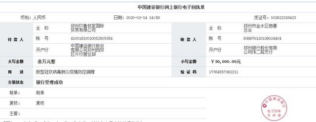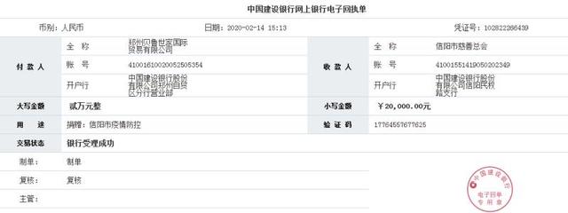 2月14日下午,郑州贝鲁世家国际贸易有限公司分别向信阳市慈善总会、郑州市金水区慈善总会捐款3万元、2万元,为当地疫情防控工作贡献绵薄之力。