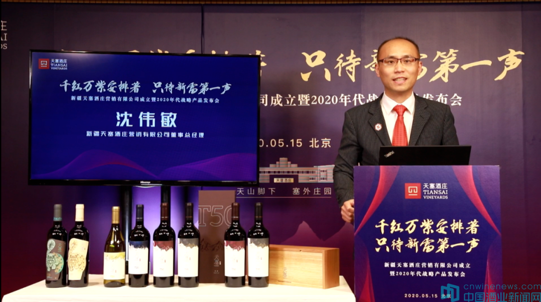 新疆天塞酒庄庄主兼新疆天塞酒庄营销有限公司董事长陈立忠现场讲述了天塞酒庄创建十年来的基础建设、品牌发展两大阶段,宣布新疆天塞酒庄营销有限公司、2020年代战略产品正式面世。
