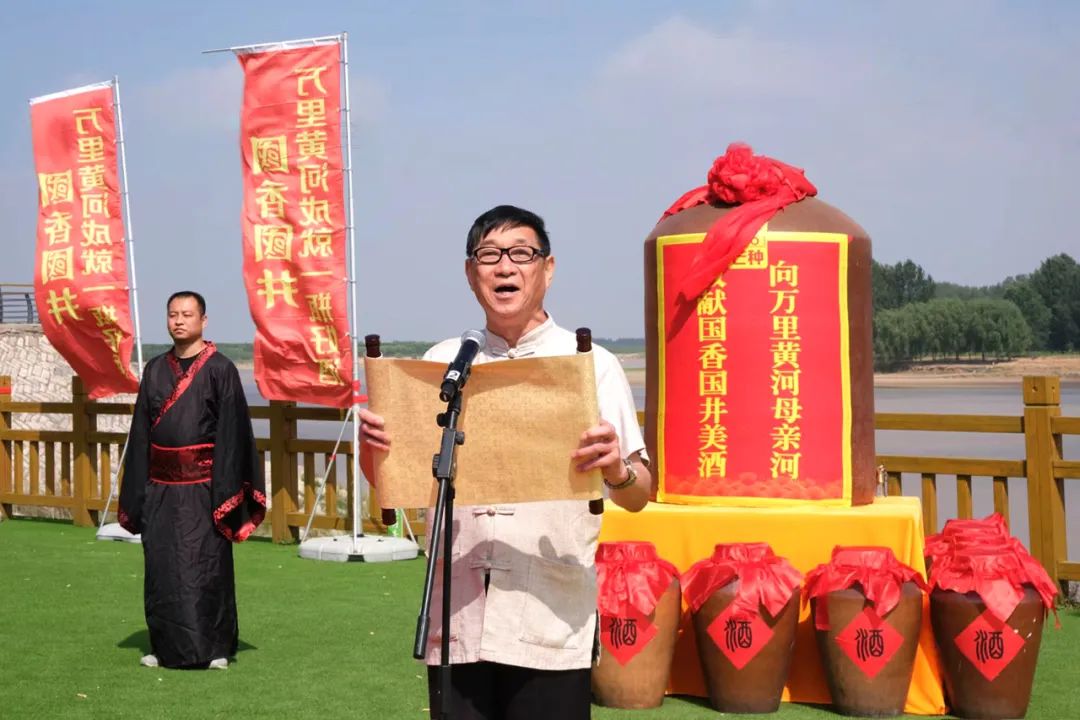 万里黄河醉高青文化大典仪式上,山东省白酒协会会长姜祖模,山东省糖酒副食品商业协会会长薛剑锐,山东省政协第十届、第十一届副主席陈光,分别向万里黄河母亲河献酒。仪式上恭读了《万里黄河醉高青酒文化大典献词》。