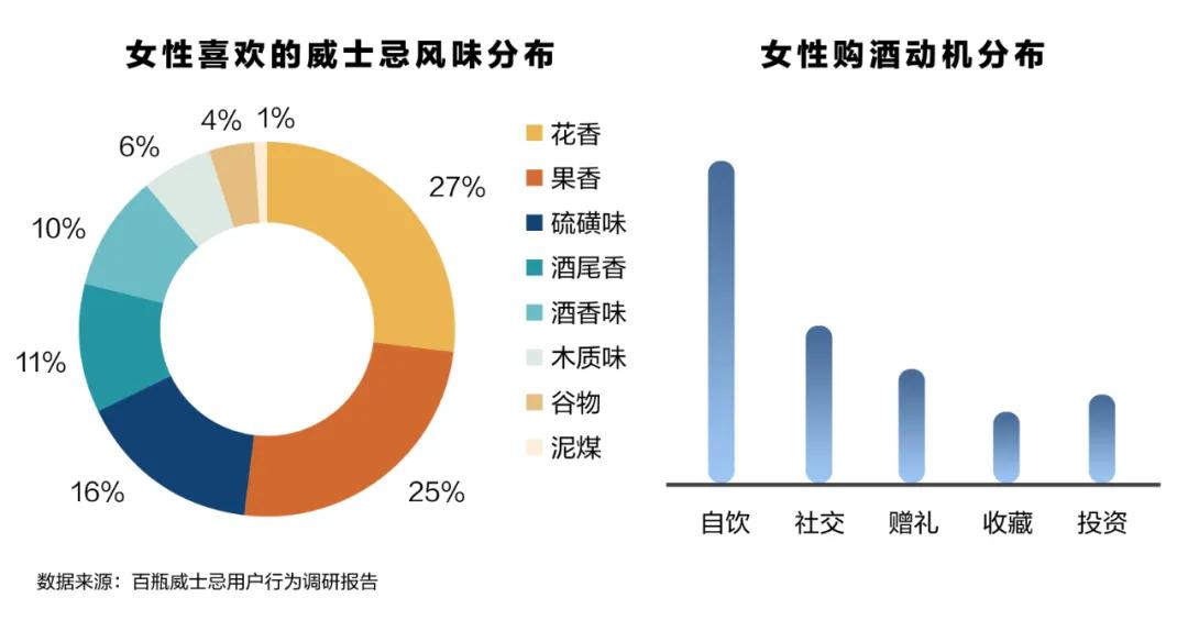 90后女性进入威士忌领域趋势明显,消费1200元以上高价威士忌的女性多于男性。《2021中国威士忌年度白皮书》显示,都市白领、Z世代年轻人、资深中产成为女性威士忌消费人群的前三甲,自饮、悦己成为女性购买威士忌的主要动力。