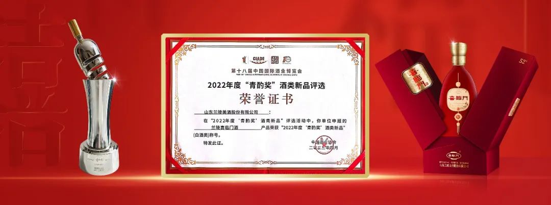 山东兰陵美酒股份有限公司(以下简称“公司”)申报的兰陵喜临门酒继兰陵美酒(六年陈)、兰陵双轮中酒后再次荣获“2022年度‘青酌奖’”酒类新品”称号。