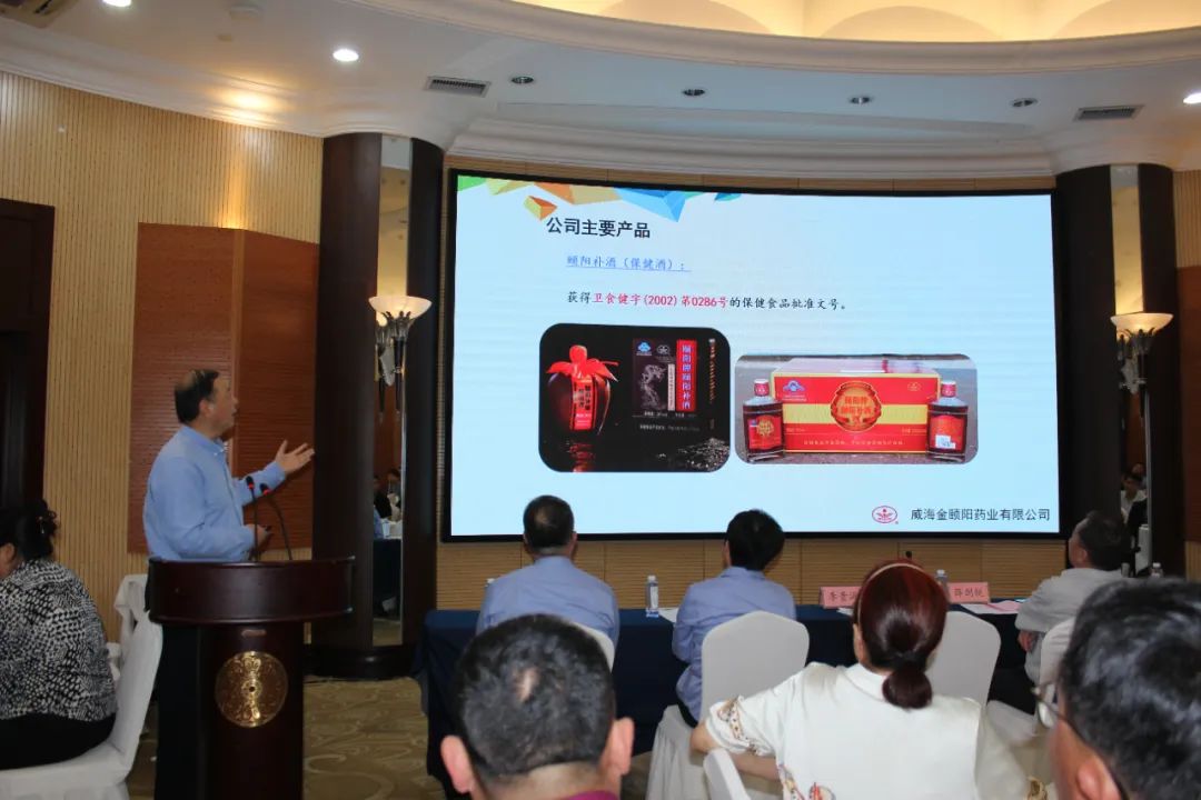 于海先在致辞中表达了对协会领导和嘉宾一直以来对颐阳集团的倾力支持与厚爱的感谢,并向与会嘉宾介绍了选择颐阳补酒的几大理由:“首先,我们是药厂生产的保健酒。威海金颐阳药业按照药品的要求生产保健酒,拥有达到10万级的空气净化系统、28道工序纯化水处理系统、全自动灌装流水线和高效提取设备,并先后制定了647个质量监测点,取得蓝帽子认证,是保健食品号产品;其次,历史悠久,文化底蕴深厚,制作技艺还入选了山东省非物质文化遗产名录;第三,配伍合理,组方严谨。中药材讲究配伍,颐阳补酒配方中既含植物类药材,又含动物类药材,1993年通过了专家鉴定;第四是底气足,敢于向消费者公布内在含量。颐阳补酒严格按照国家标准和配方生产,每批产品质量均一、稳定,正因如此企业敢于在产品标签上标示‘每100ml含:总皂苷15mg,粗多糖1.2mg’。”